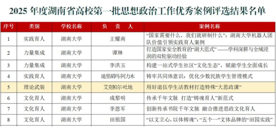 活教材打造特殊“大思政课”》获评2025年度湖南省高校第一批思想政治工作优秀案例。