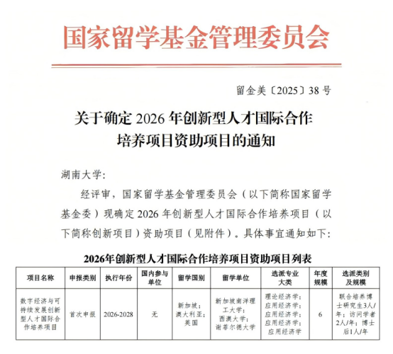 近日,国家留学基金管理委员会正式公布了2026年“创新型人才国际合作培养项目”立项结果。由欧洲杯现场直播-女足-女子足球