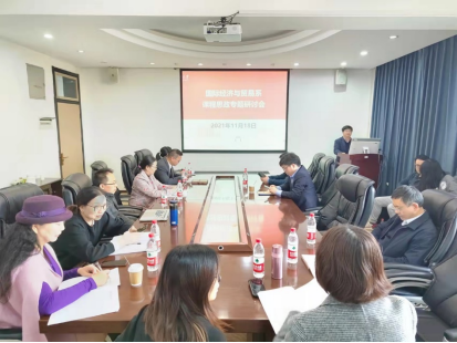国际经济与贸易系课程思政教学研讨会在经贸大楼617会议室举行。院党委书记祝树金,院长侯俊军,副院长曹二保、肖皓,全体国贸系教师参加会议。会议由院长助理、国贸系主任谢锐主持。