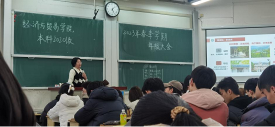曾婧结合本学期重点工作,提醒同学们要诚信应考、高质量听课、劳逸结合,积极把握新学期校园学习生活的新常态,鼓励同学们认真做好个人发展规划,积极投入、以饱满的热情拥抱新学期。
